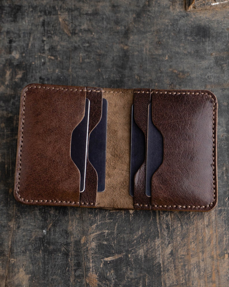 Portefeuille deux volets confectionné en cuir végétal premium, alliant minimalisme et fonctionnalité. Son design épuré offre une solution de rangement optimisée pour cartes et billets sans surcharge. Le cuir végétal, tannage naturel sans produits chimiques agressifs, développe une patine distinctive au fil du temps. Personnalisable selon vos préférences, ce portefeuille mince s'intègre parfaitement dans une poche sans créer de volume. Idéal pour ceux qui privilégient l'efficacité et la durabilité dans leurs accessoires quotidiens.
